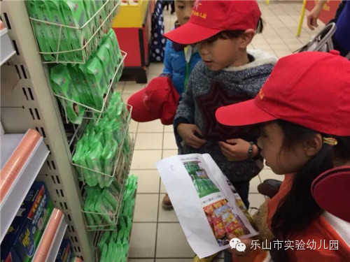 今天,乐山市实验幼儿园大六班的学习活动搬进了超市。晚上6:30,孩子们来到北京华联超市,今天的游戏是社会真实体验“购物活动”,孩子们兴趣高昂,并以小组的形式完成任务,用规定的钱购买自己组任务卡上的四样东西。