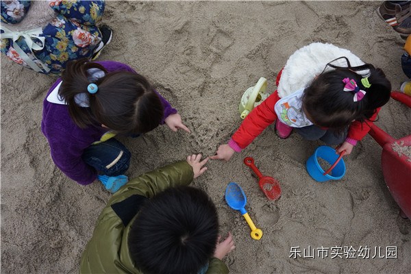 孩子们的世界是简单丰富的!一杯水、一堆沙,落在他们的手里,就是快乐与幸福!大三班的孩子们今天同沙做起了游戏、寻找了宝藏、堆起了城堡、建立了根据地、结识了盟友……这些可贵的探索、发现、创造、合作、交流,都因为孩子们对“沙”的喜爱都变得那么理所应当的和谐;纯真的笑容也因为创作“沙”的成就显得格外的灿烂……