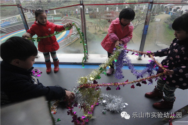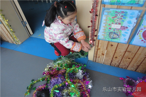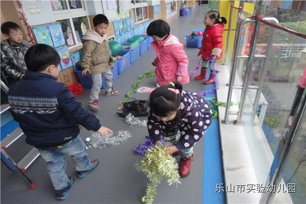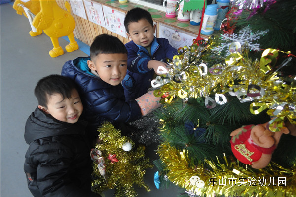市实幼大五班“多彩童年,缤纷圣诞”主题活动开始啦。孩子们和爸爸妈妈一起搜集了关于圣诞节的资料,带来了绿色的圣诞树、金灿灿的铃铛、红彤彤的的圣诞帽、白色的小雪花、红白相映的圣诞老人图片,用圣诞灯和彩色的装饰物将教室装扮一新,瞬间变成了“圣诞精灵王国”。