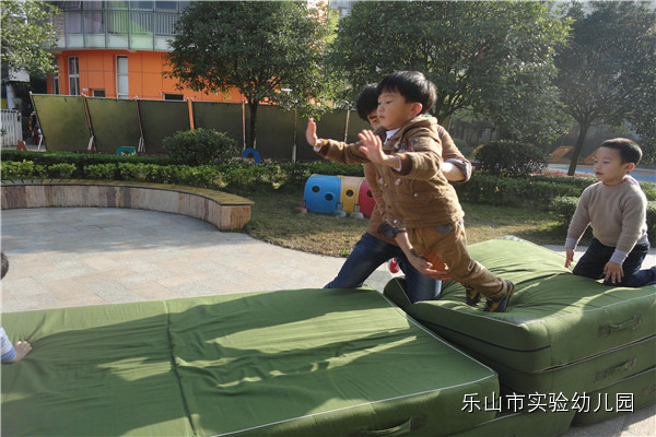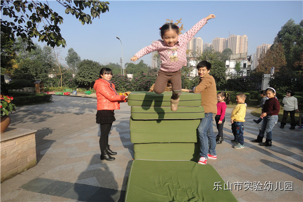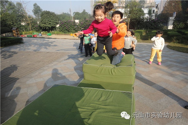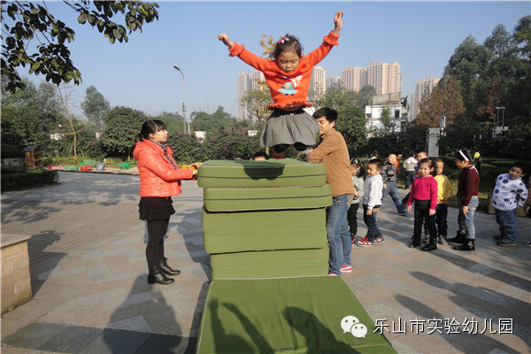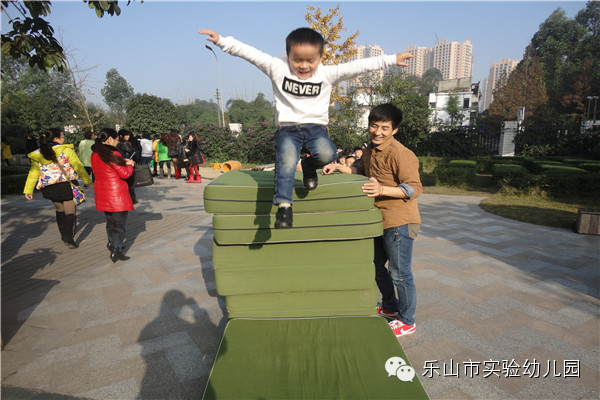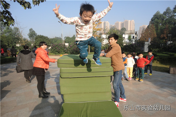 第三关“飞跃城墙”,宽度挑战了,当然少不了高度!孩子们不会做过没有个体验新鲜,尝试挑战的机会!看他们造型颇多地飞跃下来,就知道他们玩的有多么开心!