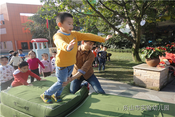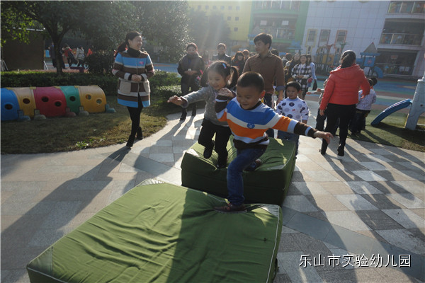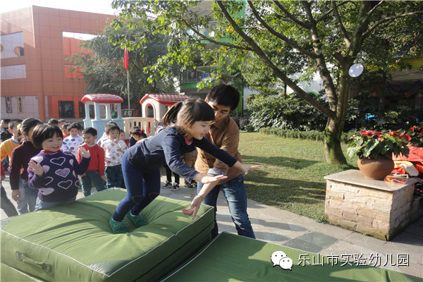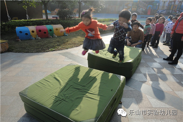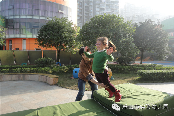 第二关“结伴飞跃”,这一关要求两个孩子手牵手一同飞跃。看他们紧握的小手,就知道他们想要一起稳稳着陆。孩子们相互迁就、帮助一同闯关!我们的孩子好棒!