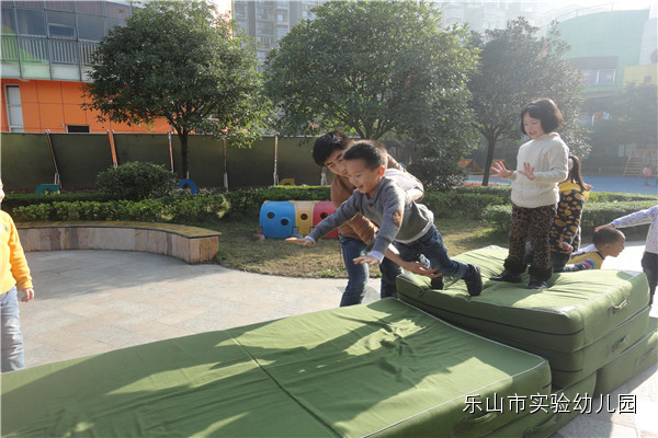 最后一关“请相信我”,这是一个考验孩子对大人信任的难关,要直直的扑到在软垫上才算挑战成功,而来自老师的保护就成为了孩子们唯一的安全感。孩子们加油!