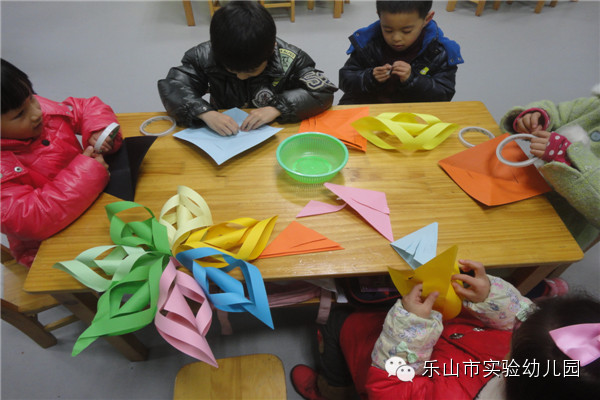 每个孩子心中都有一个小小的梦想,咱们今天就来亲手做一个属于自己的“七色花”。虽然经过了裁剪、粘贴等一系列复杂的工序,但是孩子们热情一直高涨,仔仔细细地操作着。