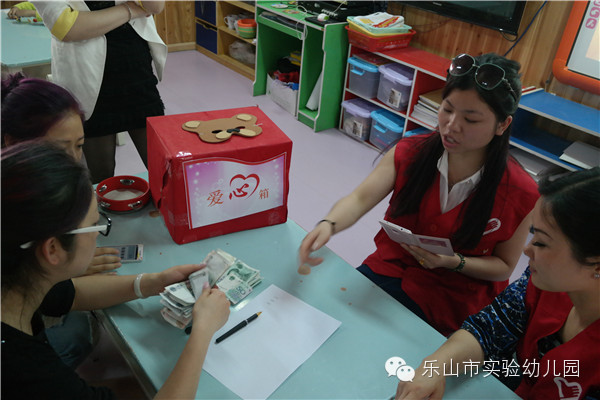 活动中孩子们稚嫩的小手认真地把自己的零花钱放进爱心捐款箱,你10元,我50、、、、、孩子们纷纷拿出自己的零花钱,积极捐款的场面感动着我们。