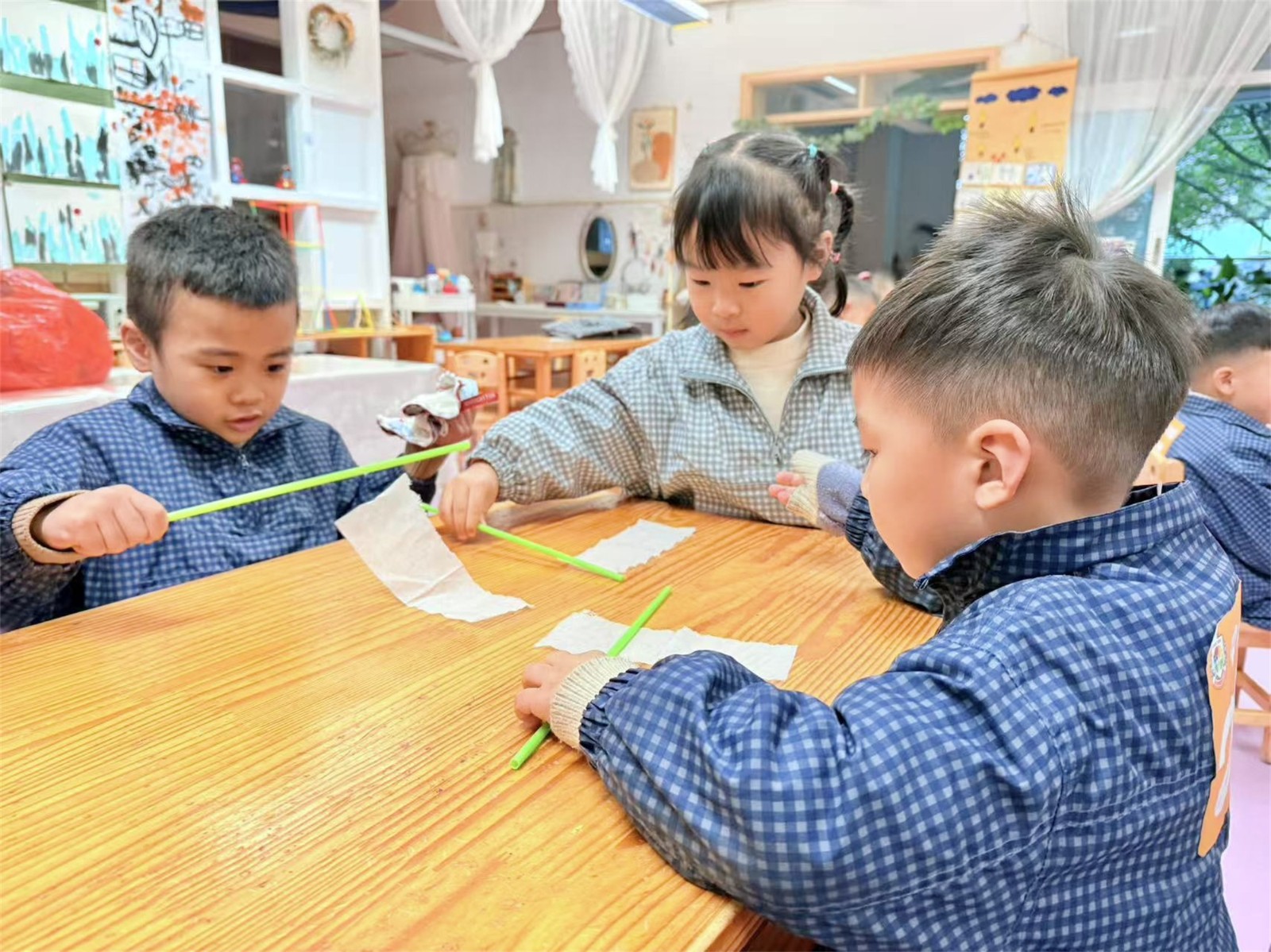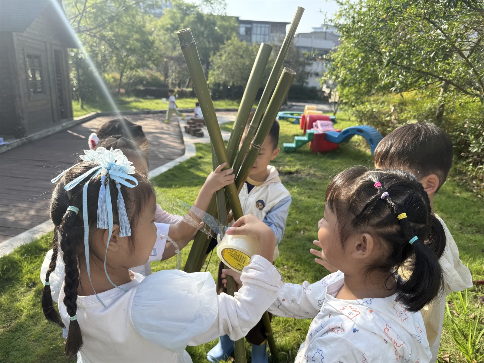 “我们一起搭坦克吧!”“你扶着竹竿,我绑线。”从中班开始,游戏中的平行玩耍渐渐变成共同创作。学会分享玩具,学会轮流发言,合作的精神在每一次游戏中萌芽。