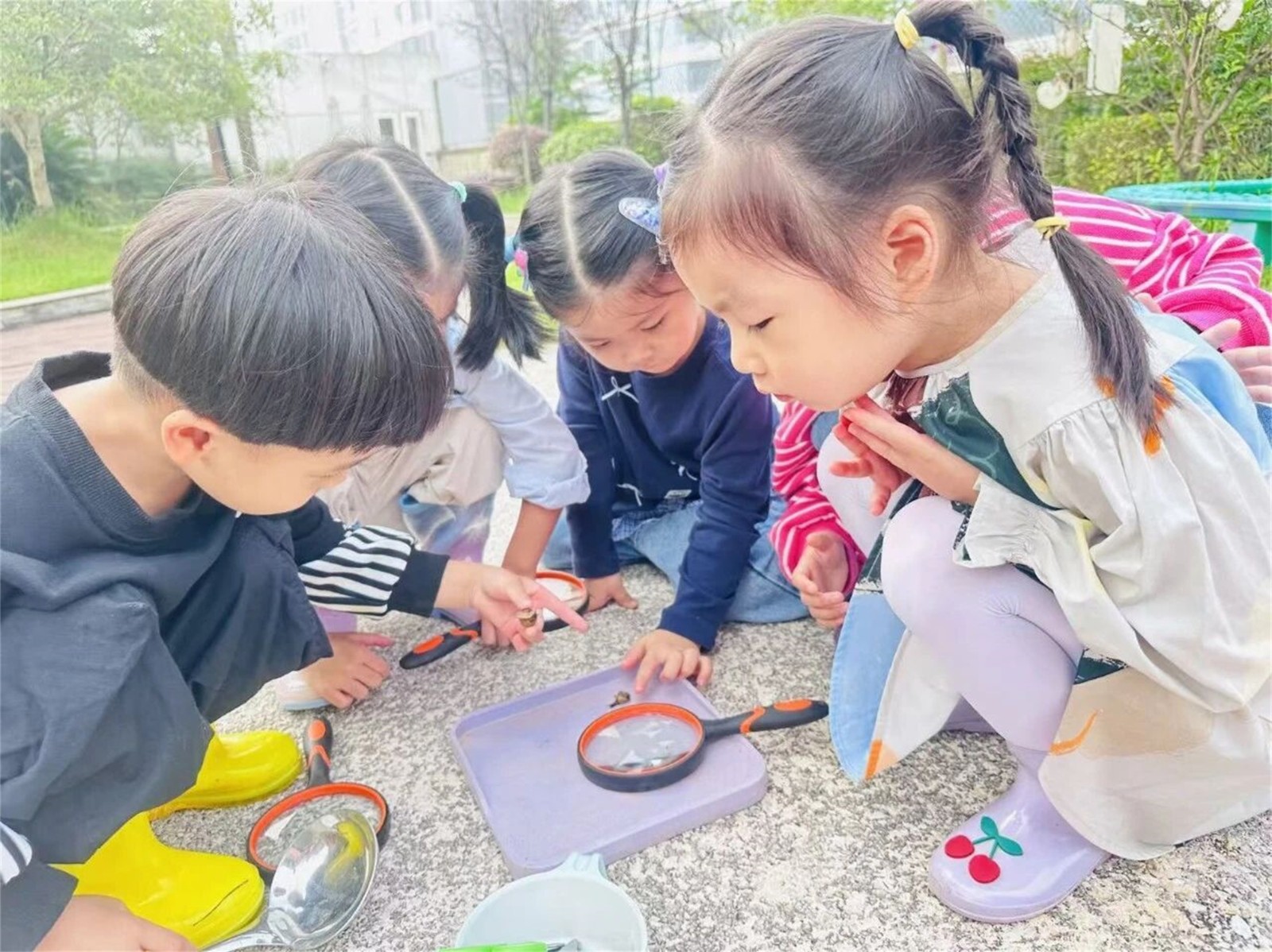 “蜗牛喜欢吃什么?它的家在哪里?”“蜗牛身边那个黑色的点点是什么?”中班的世界充满了问号。在自然角里观察植物的变化,在区域里玩科学小游戏,每一次动手操作都是你们认识世界的方式。