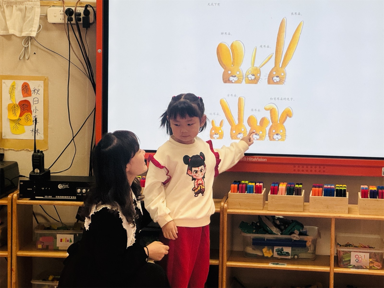 敢在集体面前讲故事了,能用画笔描绘心中的世界了,开始尝试用完整的句子表达想法了。每次和老师们的对话,都表达着你们越来越丰富的内心世界。