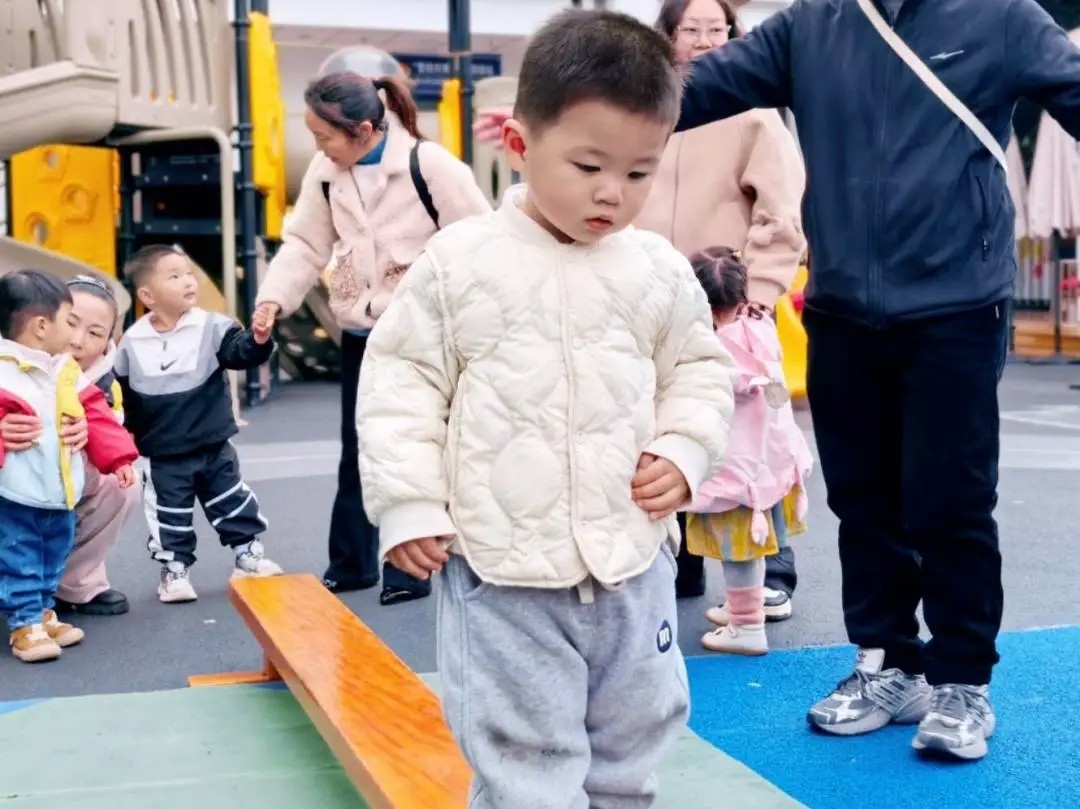 第三站体测初体验,勇气大爆发孩子们在老师的陪伴中来到运动区,体验幼儿园日常运动 健康课程中的一项重要内容 ——走平衡木。在爸爸妈妈的鼓励目光中,在老师的温柔守护下,宝贝们张开双臂,一步一步小心翼翼走过窄窄的平衡木。