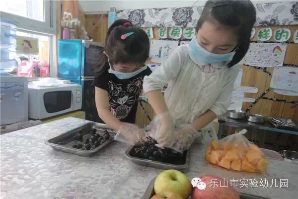 擦桌子、铺毛巾、洗水果、切水果、把水果分类、盘子摆放整齐、这些我们都会!