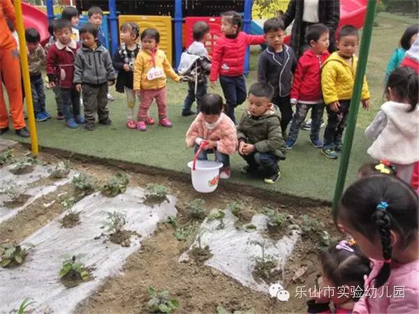 为了倡导 “生活即教育”的教育改革新理念,让孩子从小学会认知、学会做事、学会生活、学会生存,得到更全面的发展,真正体现出我园“让生活走进自然,让教育走进生活”的教育特色。我园充分利用幼儿园自身的优势资源,为每个班级的孩子们开辟了一块块长方形的小菜园,以此来引导幼儿开展种植、管理,从中体验劳动和收获的快乐。