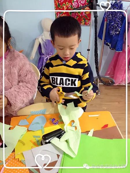 孩子的成长路上,我们喜欢带着孩子们进入影楼,穿上制作好的漂亮衣服拍许多美美的照片,不过,你知道宝贝们青睐什么样的衣服吗》-----这里能找到答案:他们喜欢自己设计出的衣服,再拍一张美美的照片。让我们一同走进乐山市实验幼儿园的宝贝工厂,欣赏一番孩子们的大作!看,不同颜色的不织布、各类丝带、亮片、胶水等操作材料在孩子们手中不断变化着,很快就可以进行DIYLO 咯。