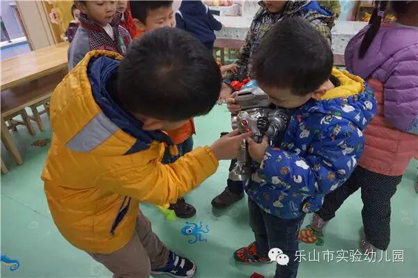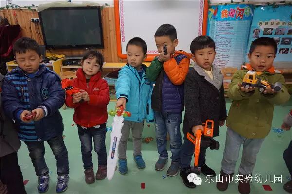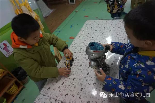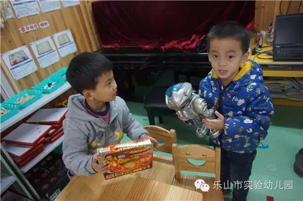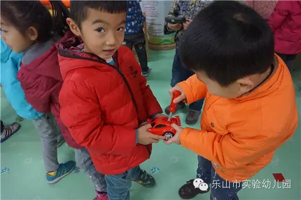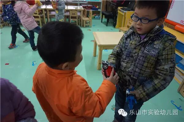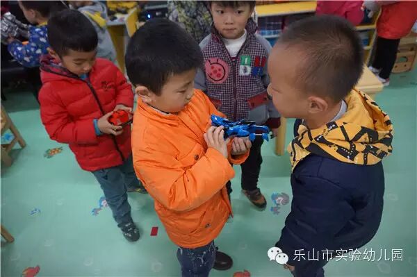 虽然玩具有瑕疵,有些可能声响开关已经失灵,变型金刚已变不成汽车等等,但依然不影响孩子们的热情。孩子们兴致勃勃手捧自己的玩具,根据自己的意愿,大胆地与同伴交流,用自己的智慧、诚意,获得对方的信任,跟同伴进行交换玩具,这种快乐的体验让孩子们享受到自己做主的成功,也收获了同伴间分享的快乐。在交换完玩具,并享受玩玩具的同时也培养他们的环保意识。