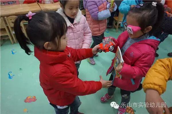 玩了许久的玩具也许玩腻了不喜欢了,有点点破损的玩具不想玩了,一些书籍看了许多遍不想再看了。可是你不喜欢的,也许别人会喜欢哦。试试交换吧,成人眼中的交换,“平等”是前提,可是孩子们不这么想哦,“高兴”是交换唯一的理由。