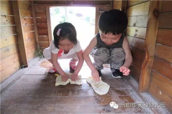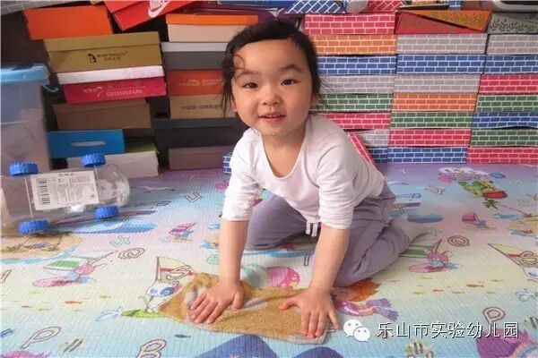 小朋友,看我给大家擦地垫哦。 我擦的又干净又亮