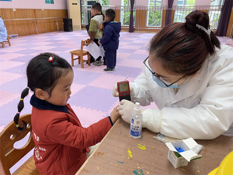季健康体检春风润物,向阳生长。幼儿的身心健康,是教育最坚实的起点,也是家园最温暖的牵挂。为全面、精准、系统地掌握幼儿生长发育动态,落实精细化卫生保健工作,318日—25日,乐山市实验幼儿园特邀社区卫生站医护人员入园,为全体幼儿开展春季健康体检。通过多维度健康监测,全面了解幼儿身体发展状况,为幼儿园后续膳食优化、运动设计及个性化照护提供科学依据。体检项目包括:血红蛋白、体格分析、视力检查、和身高体重检测。