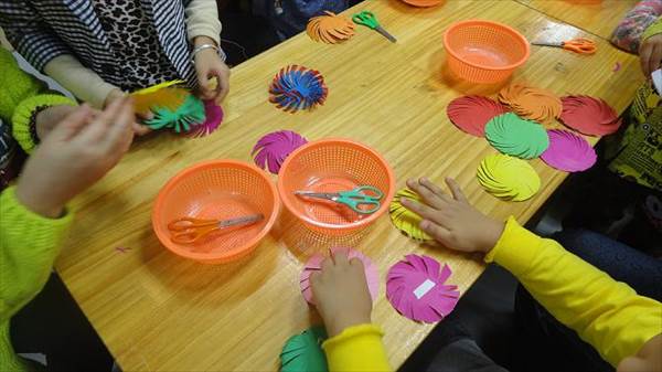 20131127日,在市实幼大六班,开展了有趣的折纸比赛,幼儿通过用小方形、小圆形折纸,折出不同花样的纸艺。