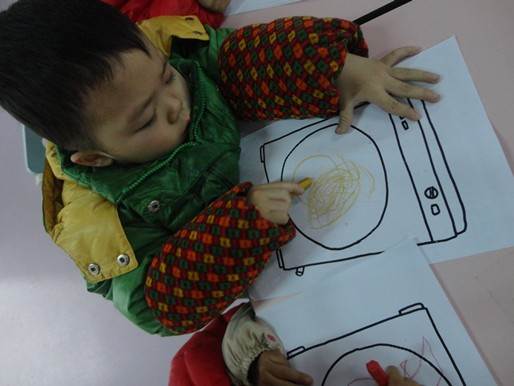 新学期伊始,市实幼各项活动带着崭新的面貌有序地开展着。瞧,贝六班正在开展“洗衣机,转呀转” 艺术活动。孩子们一边哼唱着乐曲“转呀转呀转,洗呀洗衣服”一边挥舞油画棒描绘洗衣机在洗衣时转动的情景。既提高了孩子参与音乐游戏的积极性,轻松理解乐曲和语词含义;又培养了孩子能在轮廓内画螺旋图案的精细动作,充分发挥绘画想象能力;同时感受到音乐与绘画的悄然结合而带来的无限快乐。活动中,每一个孩子都情绪高涨,格外专注,每一个孩子都被这次活动深深的吸引,并乐在其中。