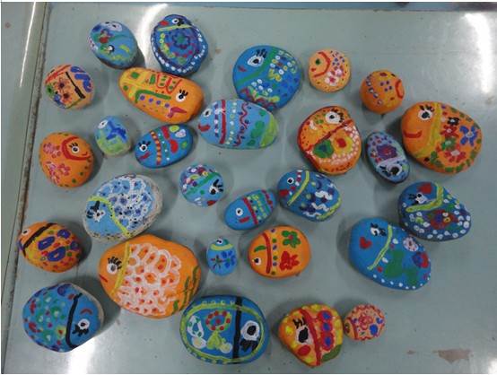 在本次活动里孩子们都体验到了进行石头画创作的乐趣,不拘形式和方法地体验在石头上作画的乐趣,发展幼儿的想象力和创造力。培养了幼儿充分利用身边发现的一切适合造型创作的材质进行发现美,创造美的实践能力。让幼儿了解石头画的特性及艺术美感,学简单的表现方法。培养孩子们想象力和创作力。