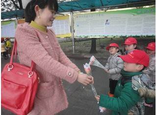 温暖的春天踏着轻盈的脚步向我们走来,3月7日,在“三八”妇女节即将来临之际,在这属于妈妈、奶奶、婆婆的特殊日子,乐山市实验幼儿园的全体小朋友开展了“童心温暖三八节”的爱心活动。孩子们在老师的带领下,兴高采烈地来到新一中校园和岷河社区,分别为辛勤工作的女老师们和各大超市、药店、用品店的阿姨、阿婆们送上节日的问候和温暖的祝福。