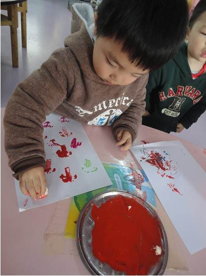 蔬菜是人们生活中必不可少的食物,利用蔬菜让宝宝们自由的发挥,美术创作,不仅培养了宝宝们的想象力,更是让孩子了解蔬菜,认识蔬菜,为我们的美术活动增添了许多的趣味性!也让孩子感受到了蔬菜印花带来的快乐!瞧,贝贝六班的宝宝们正用蔬菜大胆地进行美术创作呢!