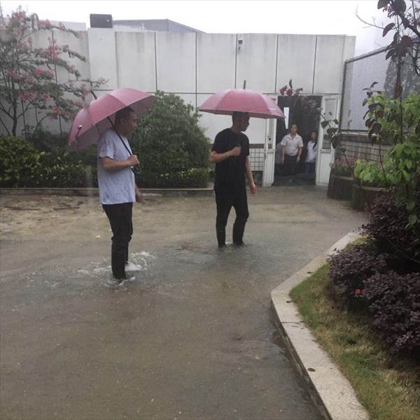 虽在大雨中行动,雨水淋湿了衣襟,但大家毫无怨言,干劲冲天,到了夜晚,师傅们依旧坚守在幼儿园,随时为突发情况采取应急措施。当领导带去关心及慰问的时候,他们用朴实的话语说:“涂园长放心,我们几个男同志都没有走,把幼儿园守好”、“幼儿园就我们几个大男子汉,肯定要我们上!”