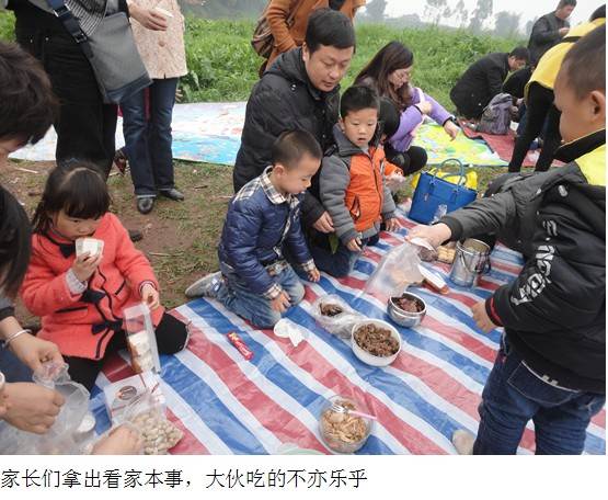 近日,随着油菜花的怒放,春天的脚步早已逼近。中三班的孩子们开始与父母的寻春之旅。来到目的地,孩子们就积极探索,自由奔跑在悠悠的草丛里,挖掘出 “埋藏在春天里的宝藏”。随着孩子们大大的收获,家长和孩子一同开始了拆宝欢乐汇,每个家庭都根据宝藏里的描述完成了各自的任务。为了给大家庆功,每组家庭都亮出了自己的杀手锏,为我们的午餐增添了许多美味。在这次亲子游中,孩子收获了快乐,家长获得了童真。