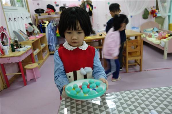 于是小朋友们在老师的带领下,开始了“包汤圆”。