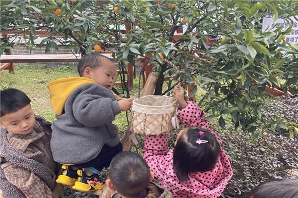 在一次早操后散步,孩子们无意间邂逅了金桔树,待金桔成熟后,孩子们迫不及待地开启了自主采摘活动。在自然课程的实施中,充分的利用园所自然资源,在生态自然的环境中通过去亲身体验及自主思考提出采摘方法并实践,勇于去尝试挑战困难,懂得了与同伴之间合作并商量解决问题。品尝劳动成果及自制金桔柠檬蜜,去感受金桔与其它橘子的不同。让孩子们不仅体验了劳动带来的收获与快乐,还真切的感受到在自然课程中主探究、自主学习,在实际操作与亲身体验中去感悟与成长。