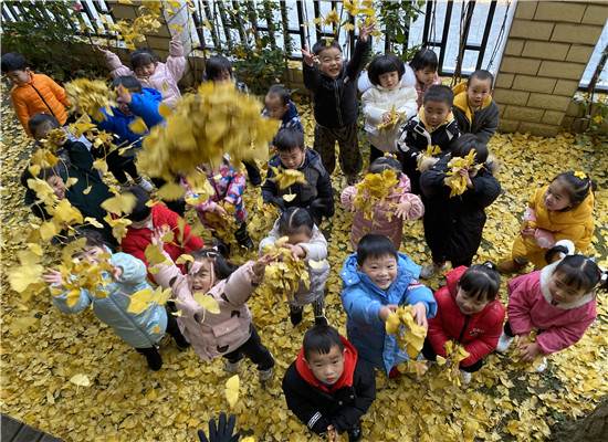 一阵微风拂过,银杏叶纷纷扬扬而下,大地仿佛铺上了金黄色的衣装。2020年12月17日下午,市实幼小班教师和幼儿充分的利用园所优质自然资源开展了“与你杏会在初冬”的活动。孩子们齐聚树下“赏”银杏,了解银杏、发挥想象,用银杏自由创作。
