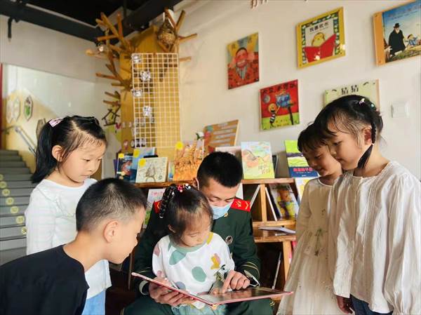 军人叔叔来到高新园与孩子们,分享了他的军旅生活,为孩子们深情讲述红色故事。