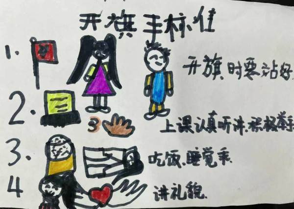 升旗手需要做什么?祺祺:“升旗手要认真,要站得直直的。”辰辰:升旗手要把国旗举的高高的。梓杨:升旗手要抬头挺胸,还要敬礼。