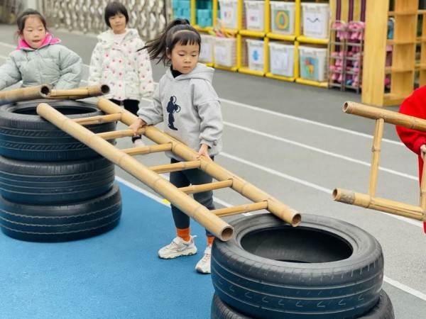 近日,市实幼高新分园以“酷趣创玩”为主题的运动月活动火热升温中。幼儿在与环境和材料互动,师幼对话围绕“有趣、有挑战、有创意、有变化、有发展”的五有原则,在嗜趣性运动游戏挑战赛中体现幼儿真游戏的玩、有发展的玩、有意义的玩。 大一班的孩子将运动与梦想相结合,将太空梦搬到运动现场。进入太空前需要提前锻炼以适应太空的失重状态,于是他们开始设计、组合、搭建,用平衡板模拟进入太空失衡的状态。太空之旅即将开始…… 大二班的孩子对制作坦克的兴趣从上学期一直持续到现在,他们想把坦克也搬到运动会的现场,来一场坦克与运动的碰撞,我们自己设计大闯关,小小坦克兵也有“翻山越岭”的力量。 大三班的孩子在木工坊敲敲打打的制作着,孩子们也想在运动场上修建火箭,先画好设计图,再用材料试一试,也许这就是未来工程师的雏形。 我们把桌子的一侧抬高,从斜面上爬过去,工程师们,想成功可要加油呀 小小的龟壳在孩子们的尝试下,有了不同的玩法。当音乐响起,孩子们化身正义的奥特曼直面挑战。当龟壳和奥特曼相遇,孩子们把兴趣与运动相结合,展现了嗜趣性游戏运动的真正目的。 中三班孩子把自身的运动经验迁移到饲养的芦花鸡身上,打算为“飞飞”“爪爪”修建一个可以锻炼的运动场,天马行空的想象,充满挑战的搭建,儿童的游戏就此开始,和芦花鸡一起来运动吧~ 小班孩子根据兴趣创设有情境的集体趣味游戏,在游戏情境中,寻找想要的材料打造属于我们的运动大闯关,锻炼我们“钻、爬、跑、跳”等的综合运动能力。 王子和公主的故事吸引了小朋友的注意,在区域游戏中孩子也开始建造城堡、扮演王子公主的故事,故事情节早已沉浸于儿童的内心。孩子们经过讨论,自己选择角色、道具、材料、服装,设计游戏的路线和搭建,终于这一场关于王子和怪兽的对决就要开始了~ 天空下的运动场是孩子们游戏的天地。看到他们跃动的身影,感受到了孩子们跳动的成长脉搏与溢出屏幕的满满元气。为了在个人竞技比赛中发挥出最佳水平我们一直在行动~ 高新分园的孩子们,像是在用生命力为自己加速,奔向那个充满无限可能的未来,毫无疑问运动中的他们无比享受,乐在其中。在这样的嗜趣性运动游戏中,孩子们真的会变得更高、更快、更强! 他们究竟会在给我们呈现出怎样精彩绝伦的现场呢?尽情期待吧
