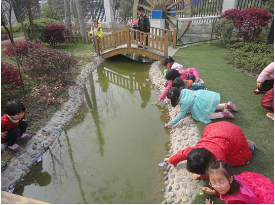 交通工具是现代人社会中不可缺少的一部分。随着时代的变化和科学技术的进步,我们周围的交通工具越来越多,给每一个人的生活带来了极大的方便。陆地上的汽车,海洋里的轮船,天空中的飞机,大大缩短了人们交往的距离。今天,我们将带领孩子们了解海洋里的轮船,并通过小实验探索船为什么会浮在水面上,通过实验孩子们明白了油泥、弹珠、小石头会沉下去,而海绵、塑料瓶会浮在水面上,最后,我们为了证明实验的结果是否正确,我带领着孩子们自己叠小船,放小船,让船儿向前行。