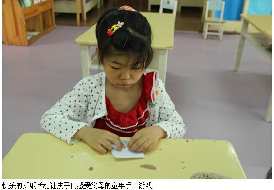还记得童年时的手工折纸船,折衣服裤子吗?乐山市实验幼儿园中二班的小朋友本周开展了一堂“幼儿感受父母童年的手工活动”,老师为幼儿准备了许多父母童年时的的手工作品,纸衣服、纸裤子。并与幼儿一同欣赏制作,让幼儿在制作中感受父母的童年。