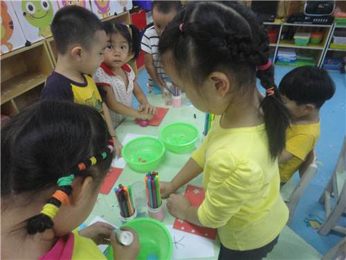 今天我们在创意阅读的时候认识了两个好朋友一个是“大”,一个是“小”,而且还给它们穿上了漂亮的衣服。瞧!彩色的卡纸,美丽的花朵,多样的印花机,这都是孩子们巧手创造的。大一班的孩子们轻轻松松、快快乐乐的找到“大小好朋友”。