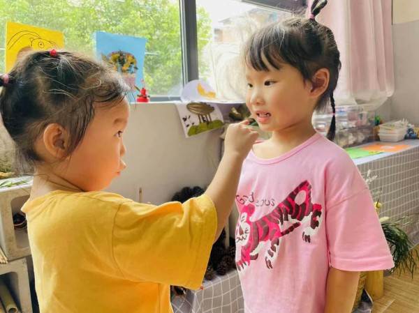 或许孩子们天生就是“十万个为什么”,当孩子们出现探究欲望时,我们当然要满足孩子们的一切好奇心。绘本:《张开嘴巴,牙齿学校在里头》绘本以风趣幽默的方式,让孩子们更直观的理解了牙齿的生长特点,以及“龋齿是什么?为什么有龋齿?”接着,龋齿这个话题仿佛让孩子们一下找到了共同点。孩子们开始观察自己和同伴的牙齿是否有龋齿。