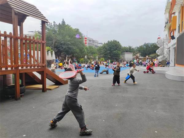 户外活动时间,孩子们个个精气十足、激情饱满,积极踊跃地参与到各项运动游戏中。