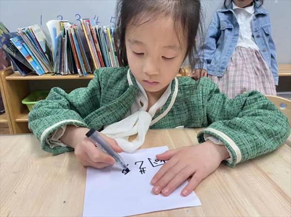 “我悄悄告诉你,我中班就会写我自己的名字了。”
