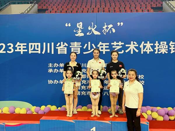 “星火杯”2023年四川省青少年艺术体操锦标赛8月11日至14日在南充举行。我园幼儿张宇莟、朱奕锦参加了此次锦标赛。其中张宇莟在比赛中从容不迫发挥稳定,以自信优异的表现斩获丙组个人全能金牌、丙组球金牌、丙组徒手铜牌,同时与队友朱奕锦荣获丙组团体金牌、团体总分银牌,共计3金1银1铜的好成绩。