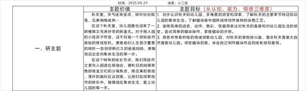 以儿童为圆心,以资源为半径——绘制最美课程“同心圆” 陈一铭 ''以儿童为圆心,以资源为半径''Deliberation小班见“适应”,中班见“成长”,大班见“未来”一幅幅动态生成的主题地图,讲述秋天与文化里的教育哲学 秋风如画笔, 不仅点染了层林尽染的自然画卷,更在时光脉络上勾勒出五千年文明的轮廓。在这初秋之季,乐山高新区实验幼儿园的教育者们正以专业与匠心为经纬,将季节的馈赠与文化的传承,编织成一副属于孩子们的课程织锦。 >>>> 在这里,主题审议不仅是教学的前奏,更是一场与秋天对话与文化共舞的教育诗篇。 01< 绘图·从线性教案到立体生态 >图纸之上,脉络之下,流淌的是对每一个儿童的深刻理解与期待。 “思维导图”. 本次主题前审议在保持原有的主题前审议记录表的前提下,重新优化,改变了主题网络图的大纲,给予了教师更加清晰的脉络路径。让它不再仅仅是教学计划的附庸,而是课程生成的“大脑图谱”和“行动导航”。 基础课程:生活化课程,呈现了晨间、生活、游戏、户外、学习活动,将目标渗透于主题活动中,保障幼儿全面发展的基础。 理念是种子,思维导图就是破土而出的第一株新芽 基础课程 >>>> 特色课程:《康·美课程》,“康”主要以创玩日和发展积极心理为主,“美”则是让孩子们在活动中感受美、体验美、创造美。 02< 图的起点·审议记录表>我们的“勘探报告”与“设计总纲” 审议记录表. 在动笔绘制网络图之前,每一份详实的《主题前审议记录表》早已为这幅“工程蓝图”打下了坚实的地基。 研价值:“定下圆心” 追问“为什么是这个主题”小班 用秋的温和与文化初晖,为新生构筑安全感与归属感。中班 聚焦秋的丰硕与文化深度,催化升班幼儿自信与能力。大班 借助秋的沉淀与文化传承,为幼小衔接注入满满的心理与能力预备。 研儿童:标刻“刻度” 这是蓝图的生命之本。“小班孩子会对落叶微笑,但也会想家;中班孩子更渴望被认可,喜欢问为什么;大班孩子会开始纠结于规则与对错。”这些基于观察的鲜活记录,确保了网络图的每一个延伸都精准对标孩子的真实需求与发展节点。 以儿童为本 研资源:“拓展半径” 户外的田野、果园、浓厚文化氛围的博物馆、温馨舒适的班级环境,有趣的亲子体验......这些在审议中被一一挖掘的资源,成为网络图中,那些充满创意的课程枝干,让课程从教室走向更广阔的世界。 “资源” 03< 精修蓝图·深耕沃土>在审议起点处探寻更美的教育风景 如果说每一幅主题网络都是教育者用心绘制的课程蓝图,那么审议过程中的反思与解惑,便是让这片蓝图落地生根的深耕与细作。当秋日的余晖撒落在审议记录表的字里行间,我们驻足回望,在图的起点处,发现了更多值得雕琢的细节与延展的可能。 本次主题前审议中,保教主任鲁瑶针对优化后的主题网络以及审议起点——《主题前审议表》本身,进行了深入探讨。 01 课程边界要更明晰 在绘制主题网络图时,要更清晰地区分基础课程与特色课程的边界与衔接,避免内容混杂,确保每类课程都能充分发挥其独特的育人功能,形成相辅相成的有机整体。 02 价值研判需更聚焦 要更精确地把握“秋”与“文化”在每个年龄段的核心价值体现,避免内容泛化,实现主题教育价值的最优解。 03 资源整合可更创新 可以进一步打破空间限制,更深层次地挖掘并利用家庭、社区、数字资源、文化元素与季节特征。 这些总结,并非终点,而是通往更优质课程的起点。它意味着我们的课程设计是一个动态优化、永无止境的探索过程。 每一片落叶都诉说着教育的故事, 每一个传统节日都焕发出新的教育生机。主题审议让教育在季节轮回与文化传承中,生长出最动人的模样,为孩子们的童年铺就一条通往传统文化与未来世界的多彩之路。
