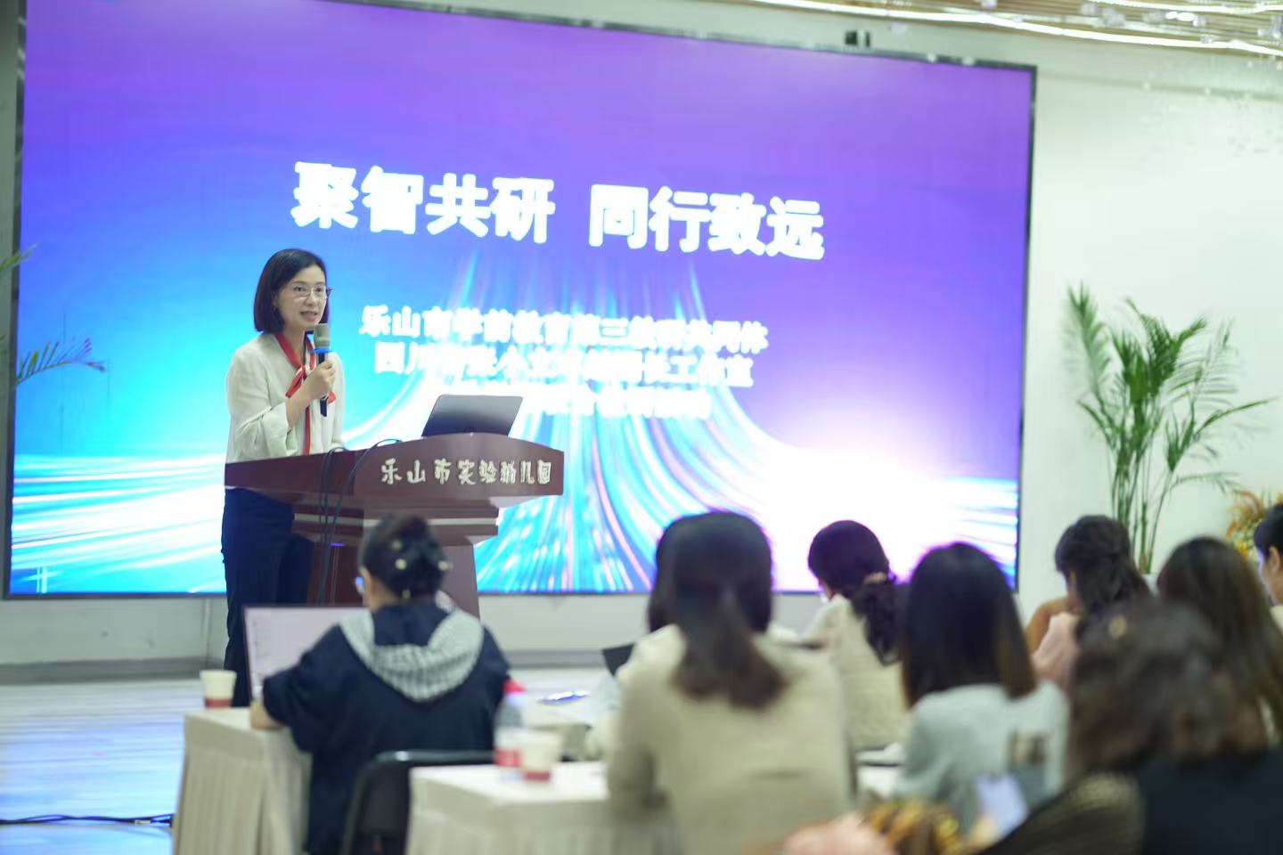 活动由乐山市实验幼儿园副园长蔡敏艳主持。她以从容沉稳的姿态,清晰梳理了教研流程,为本次联合教研拉开了深度研讨的序幕。