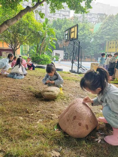 在乐山市实验幼儿园的自然天地里,散落的大小石头是孩子们最爱的“宝藏”——敲一敲听清脆声响,摸一摸感粗糙纹理,画一画添创意色彩 。一场始于偶然的“棋”遇,就这样在“石头小镇”的草坪上悄然绽放。 在乐山市实验幼儿园的自然天地里,散落的大小石头是孩子们最爱的“宝藏”——敲一敲听清脆声响,摸一摸感粗糙纹理,画一画添创意色彩 。一场始于偶然的“棋”遇,就这样在“石头小镇”的草坪上悄然绽放。