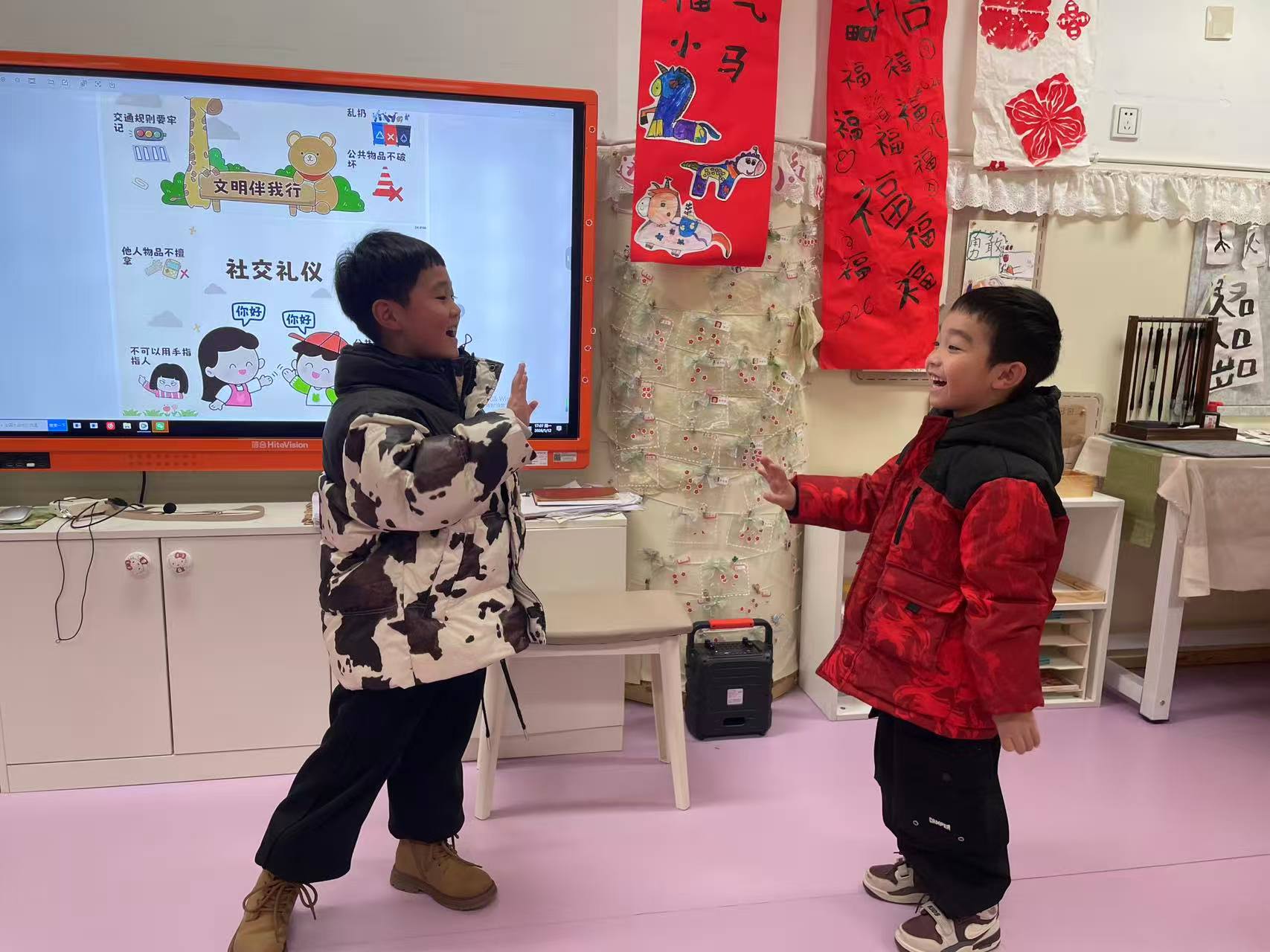 故事里的礼仪:老师们通过绘声绘色的故事、情景表演等方式,向孩子们传递礼貌用语、友好交往、遵守规则等基本礼仪。