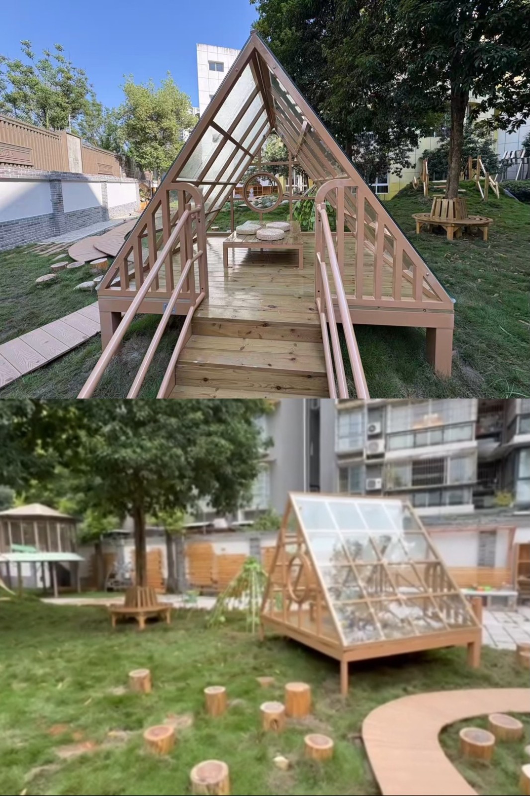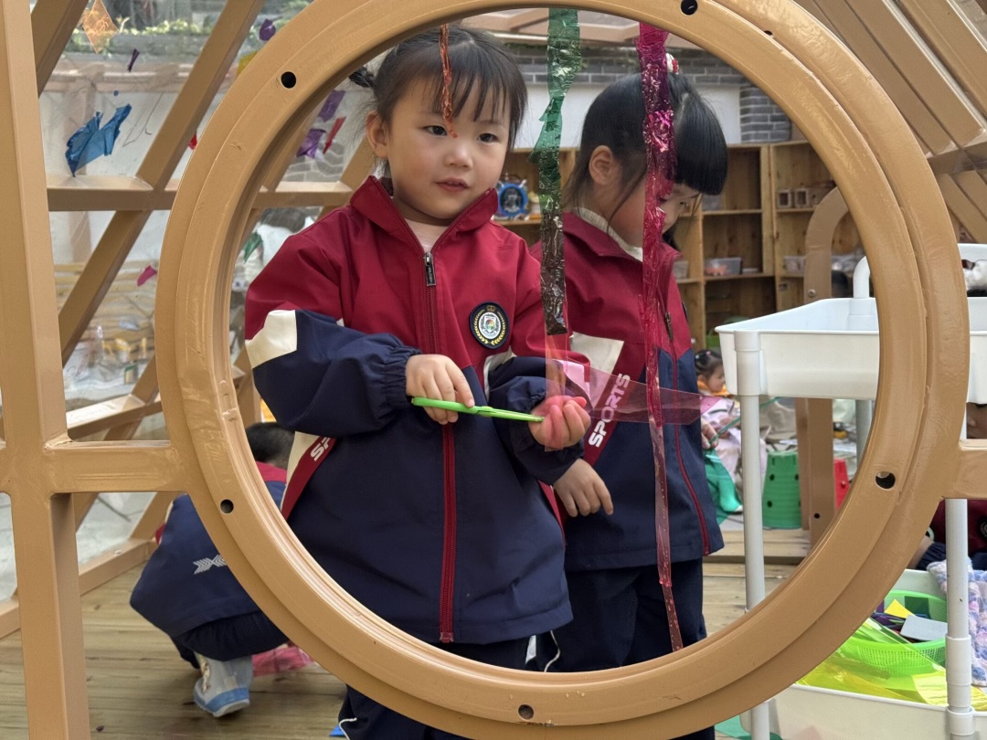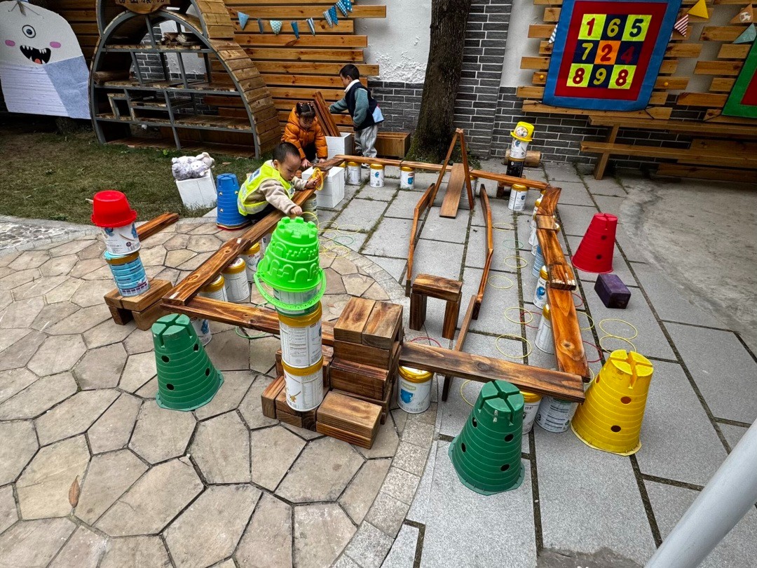 小五班孩子们的户外游戏区里,一场充满奇思妙想的探索之旅正在上演。孩子们穿梭在透明阳光房、建构天地与自然工坊之间,用光影、积木、落叶编织着属于自己的游戏童话。
