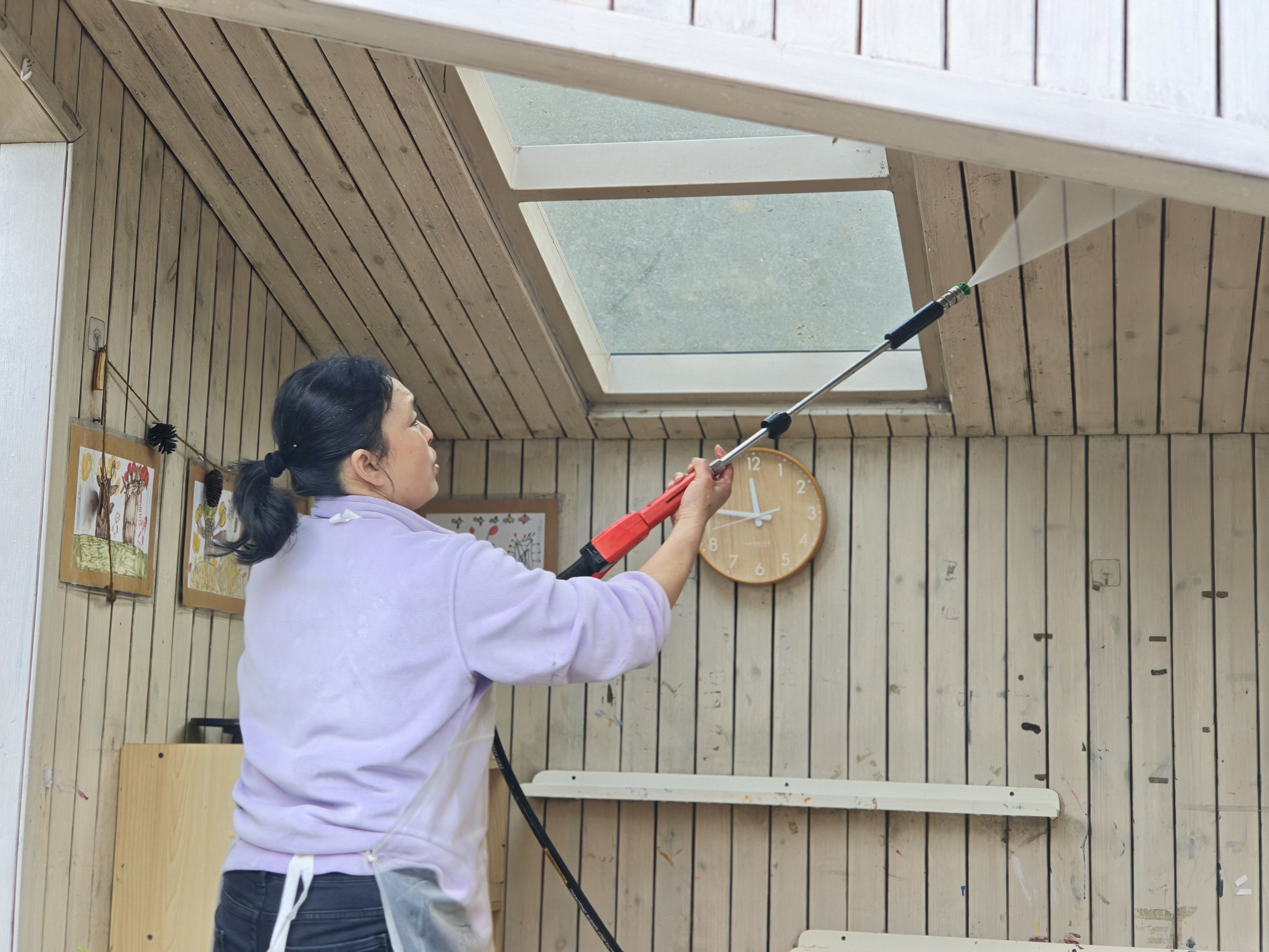 为给孩子们提供安全健康的成长环境,幼儿园开展全覆盖、无死角卫生清洁与专项消毒工作,从室内到户外,层层把关,细致到位。