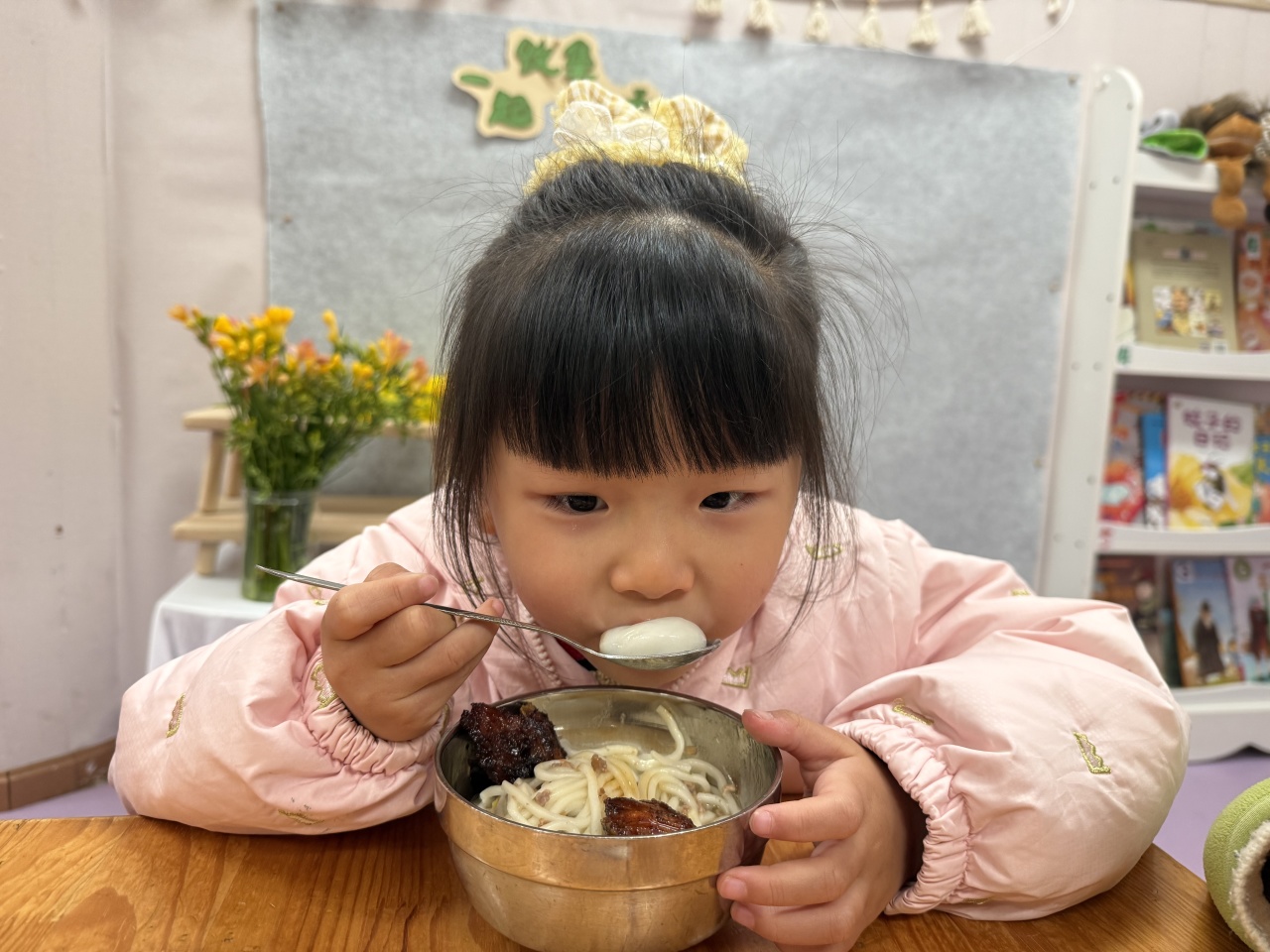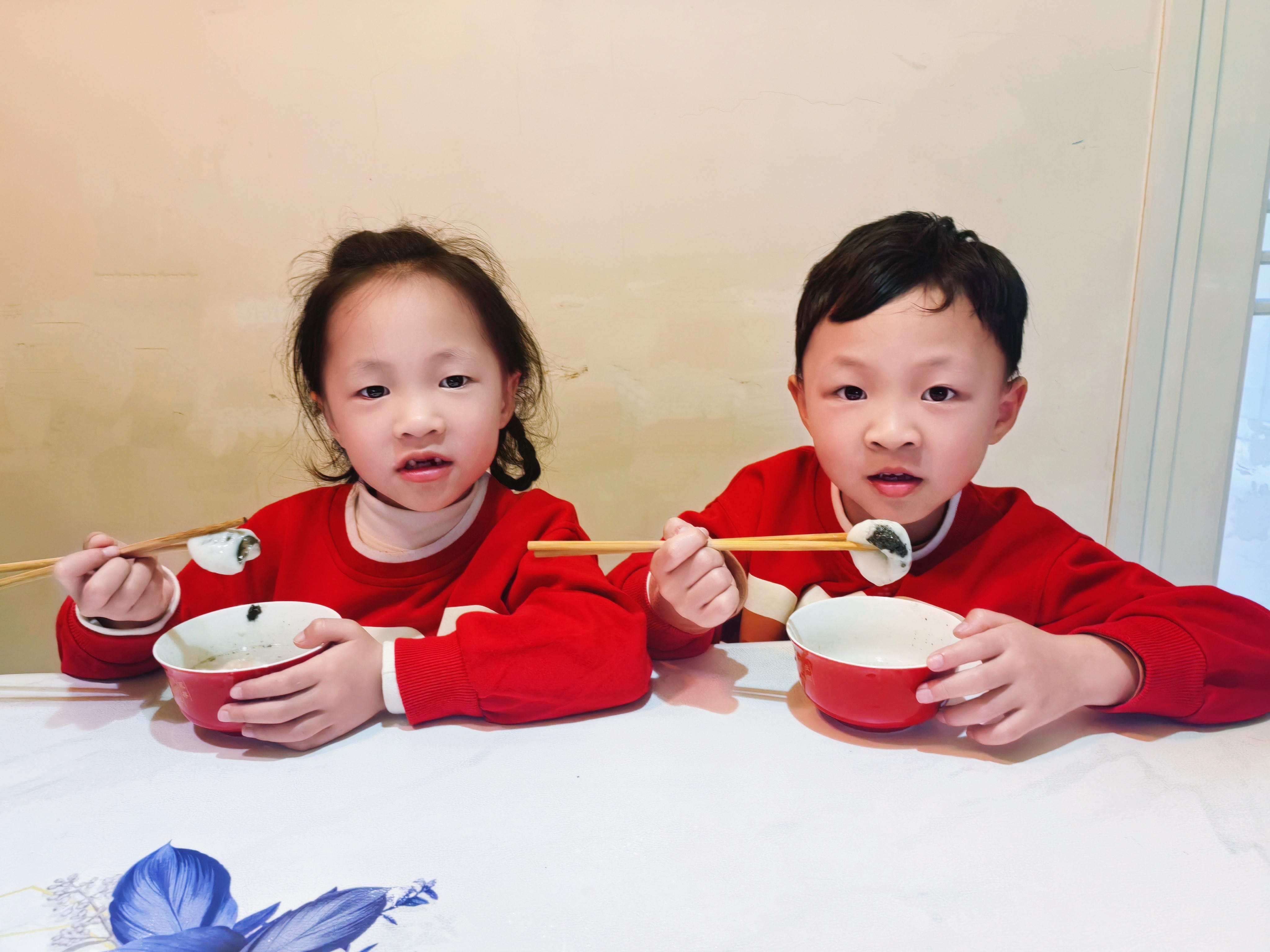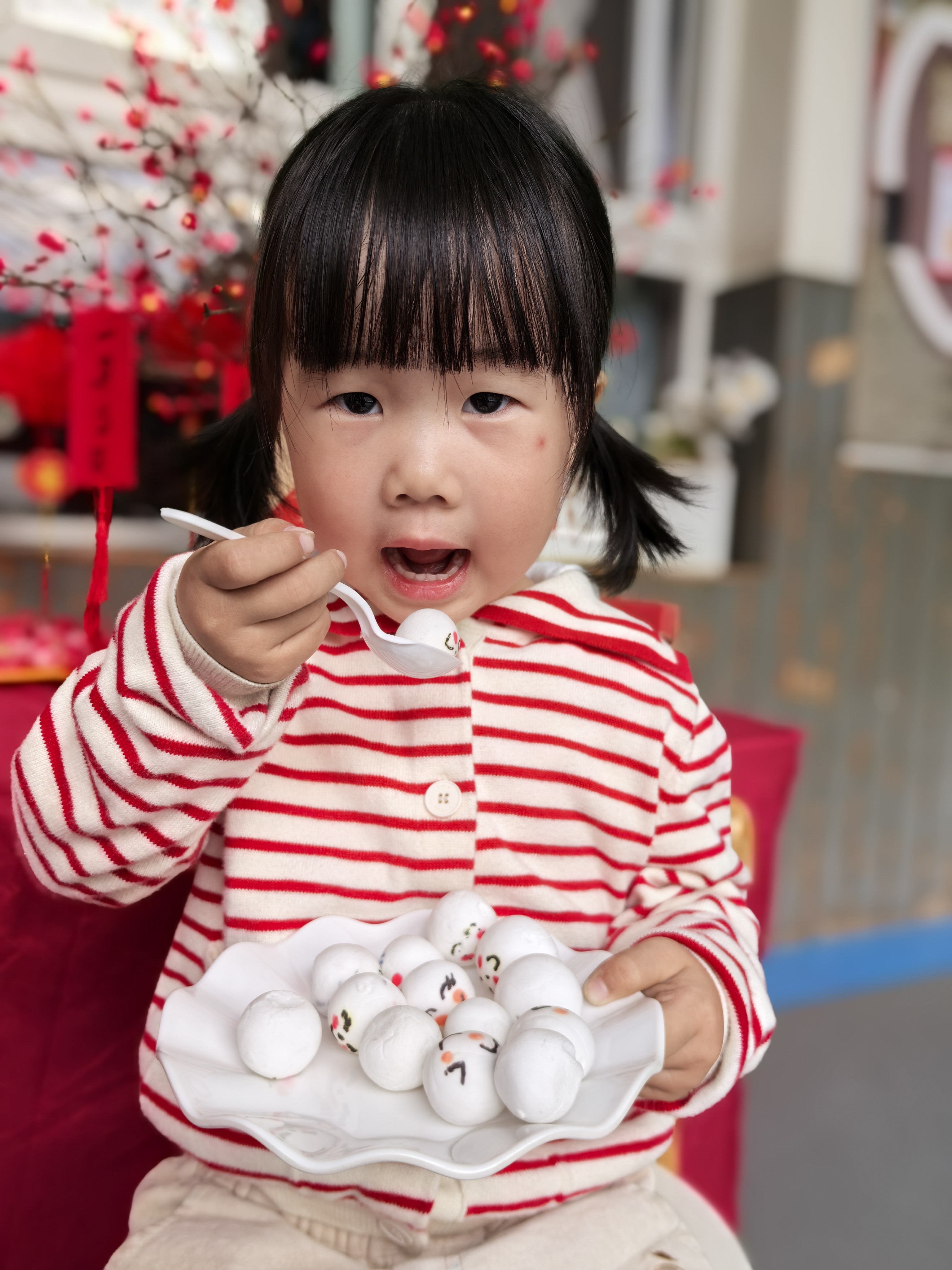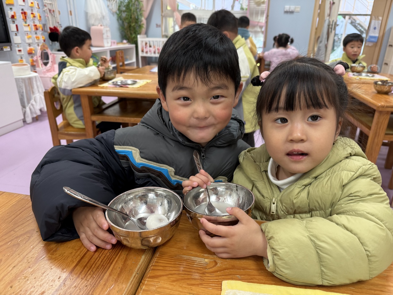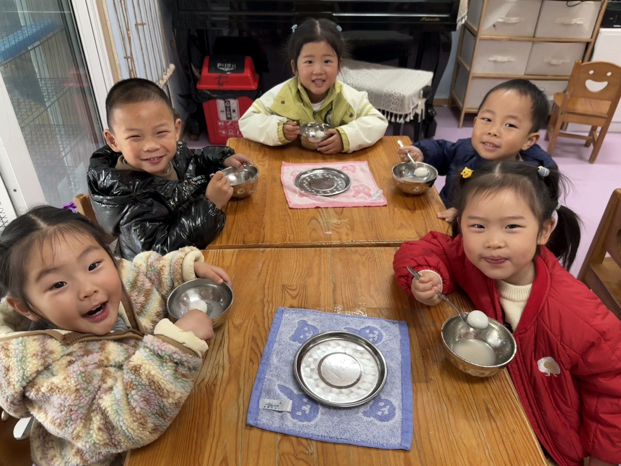 孩子们品尝着自己亲手制作的汤圆,甜甜的味道在口中散开,如同元宵节的欢乐氛围弥漫在整个班级。