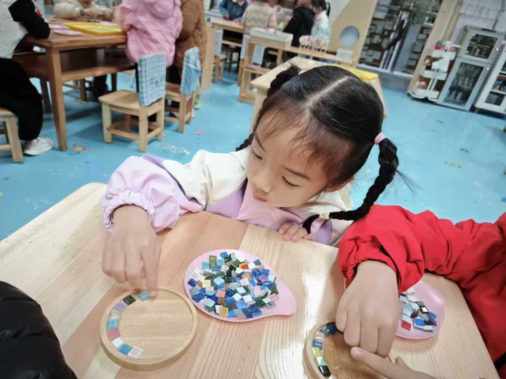 市实幼总园:“黄金手镯”、给你一个爱的“抱抱”、送你一朵小花花、马赛克杯垫、花花手提包、姓氏手链、扭扭发夹、植物印染丝巾、自制节日花束。