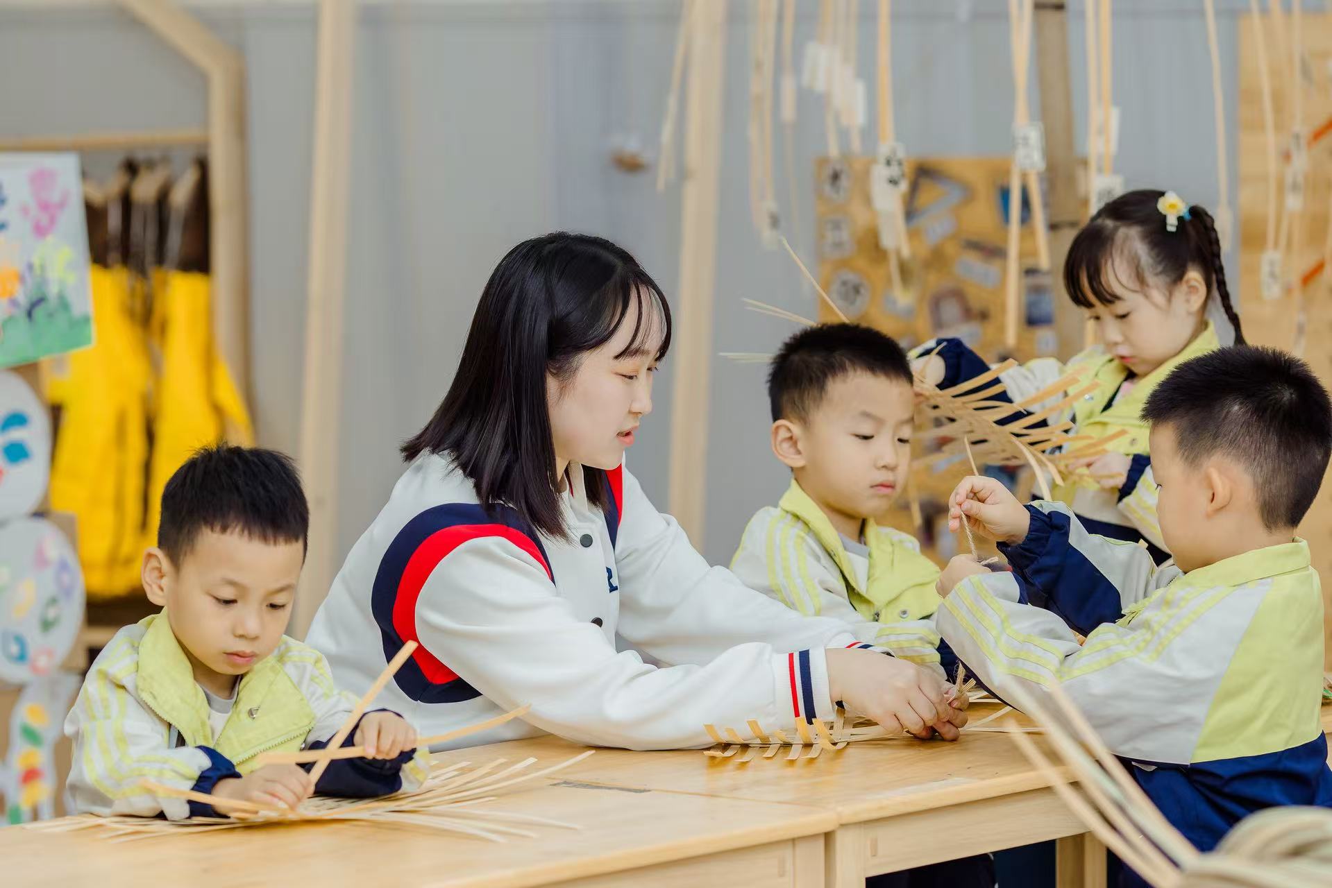 孩子们在教室里自由探索。