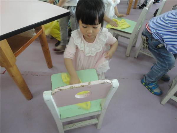 现在小八班的宝贝们个个都是清洁高手,孩子们把自己床、小椅子都擦的干干净净,还帮老师把玩具都擦干净了,听,宝贝们情不自禁的唱着、笑着“擦呀擦呀擦呀擦,洗刷洗刷洗刷刷,哇!我们的教室好干净呀