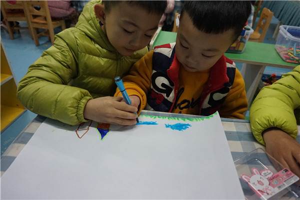小班孩子在哥哥姐姐的带领下,更快的适应着幼儿园的集体生活,他们在哥哥姐姐的示范引领下懂得:活动时小声交流,不打扰旁边的朋友;游戏材料要和伙伴们分享,不争抢玩具,发现同伴有困难时要相互帮助;滑滑梯排队轮流玩,学会等待……